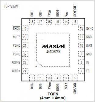 MAX9768具有高達77dB的PSRR、低至0.08%的THD+N和高達97dB的SNR。可靠的短路和熱過載保護防止故障狀態下器件損壞。MAX9768采用24引腳薄型QFN-EP (4mm x 4mm x 0.8mm)封裝,工作于-40°C至+85°C擴展級溫度范圍。
