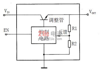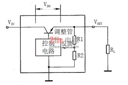 線性穩壓器是通過輸出電壓反饋、經誤差放大器等組成的控制電路來控制調整管的管壓降VDO (即壓差)來達到穩壓的目的,如圖l 所示。其特點是VIN 必須大于VOUT 且調整管工作在線性區(線性穩壓器從此得名)。無論輸入電壓的變動或負載電流的變化引起輸出電壓變動時,通過反饋及控制電路,改變VDO 的大小,使輸出電壓VOUT 基本不變。