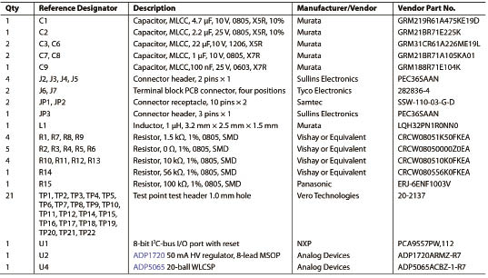 表1 ADP5065設計方案材料清單
