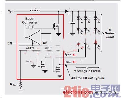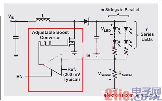 圖2:集成電流阱的LED驅動器