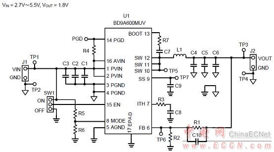 | BD9A600MUV 6A同步降壓轉換器解決方案 |