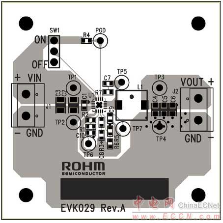 圖5.BD9A600MUV-EVK-001評估板PCB元件布局圖(頂層)