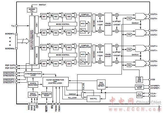 AD9154是一款四通道、16位、高動態范圍數模轉換器(DAC),提供2.4 GSPS最高采樣速率,可以在基帶模式下產生高達奈奎斯特頻率的多載波。 AD9154具有針對直接變頻傳輸應用進行優化的特性,包括復數數字調制、輸入信號功率檢測以及增益、相位與失調補償。DAC輸出經過優化,可以與ADI公司的ADRF672x射頻正交調制器無縫接口。在混頻模式下,DAC可在二階和三階奈奎斯特區內重構載波。串行端口接口(SPI)允許對內部參數進行編程和回讀。滿量程輸出電流可以在-4 mA至-20 mA范圍內進行編程。 AD9154提供88引腳LFCSP封裝。