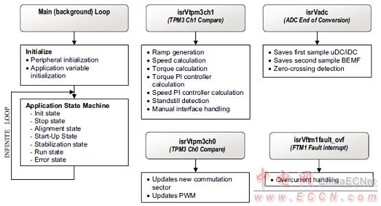 The concept of the application is a speed and torque closed-loop BLDC drive using a sensorless BEMFzero crossing technique. It serves as an example of a BLDC motor control design using a FreescaleColdFire V1 Family MCU.