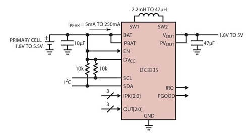 圖 2:LTC3335 毫微功率降壓-升壓型轉(zhuǎn)換器的典型應(yīng)用原理圖