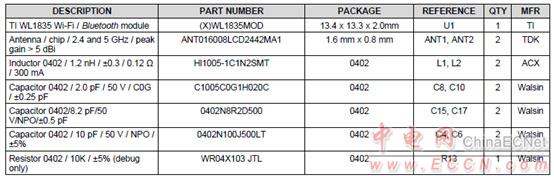 WiLink 1835模塊天線參考設計WL1835MODCOM8B