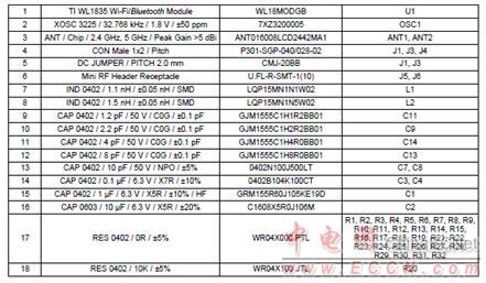 TI公司的WL18xxMOD WiLink™ 8單頻段Combo模塊,包括Wi-Fi,藍牙和藍牙低功耗(BLE),可提供高數據吞吐量和擴展范圍,并支持Wi-Fi和藍牙共存, 工作頻率2.4GHz,雙天線解決方案.器件經FCC, IC ,ETSI/CE,和 TELEC認證,適用于接入點 (AP) 和客戶端,主要用在物聯網(IOT),工業和家庭自動化,多媒體,智能網關和計量,家用電器和電子,視頻會議,攝像機.本文介紹了WL18xxMOD主要特性,框圖,典型應用-WL1835MOD參考設計及其材料清單,WiLink 1835模塊天線參考設計主要特性,電路圖,材料清單和PCB設計文件.