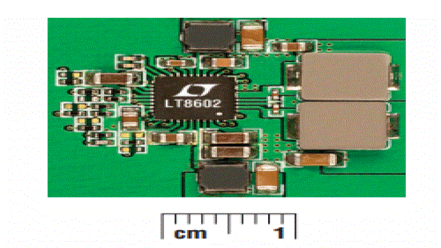 圖 3:LT8602 四輸出解決方案占板面積 (2x實際尺寸)