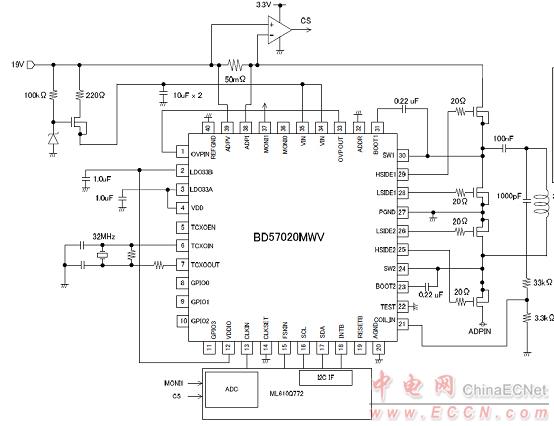 Rohm公司的BD57020MW是無線電源發送器,包括了用于線圈驅動的逆變器,Qi兼容的通信控制器和解調電路,GPIO,TCXO緩沖器和I2C接口,支持Rohm BD57020MWV Qi無線充電(低功率和中功率),主要用于WPC兼容設備,PC和充電支架底座.本文介紹了BD57020MWV主要特性和指標,框圖,典型應用電路圖及材料清單與WPC Qi中功率充電參考設計電路圖.