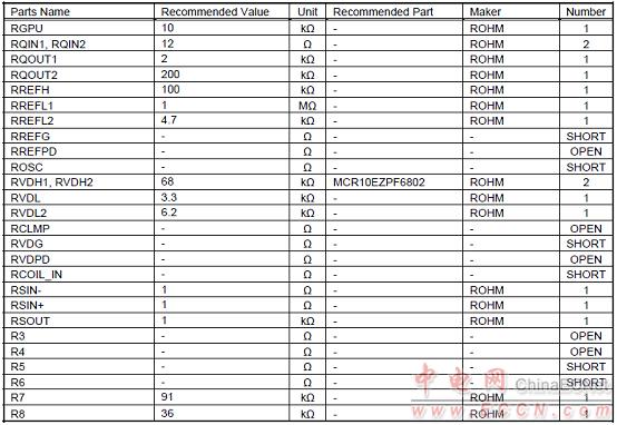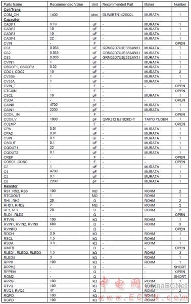 BD57020MWV典型應用電路中材料清單(BOM):