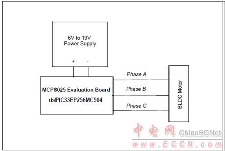 圖5.MCP8025 TQFP BLDC馬達驅動評估板框圖