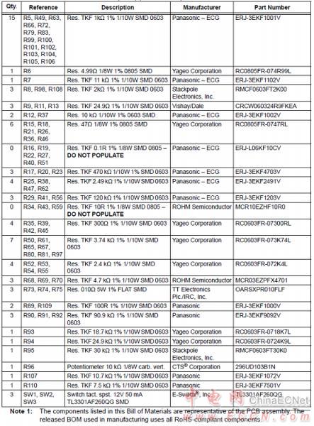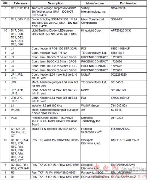 MCP8025 TQFP BLDC馬達驅動評估板材料清單: