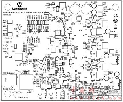 圖8. MCP8025 TQFP BLDC馬達驅動評估板PCB元件布局圖