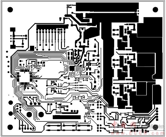 圖12. MCP8025 TQFP BLDC馬達驅動評估板PCB金屬層設計圖(底層) |