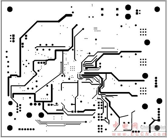 圖11. MCP8025 TQFP BLDC馬達驅動評估板PCB MID2金屬層設計圖