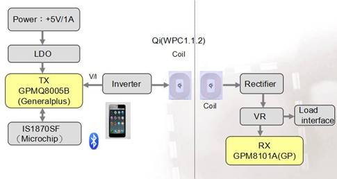 大聯大品佳的Generalplus(凌通科技)的GPMQ8005B支持+5V/1A DC輸入,2.5W-3W輸出;支持QI(WPC1.1.2)標準,支持A5/A11線圈;TX與RX耦合頻率在130KHz(不同廠家可能頻率可能不同,主要看線圈諧振電容值);支持BLE 4.0數據傳輸,同時支持iBeacon以及BeaconThings應用;工作環境:-40℃---+85℃。 |