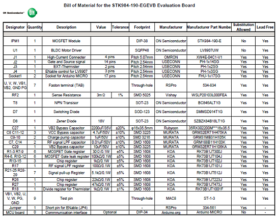 The STK984-190-E is a MOSFET power module containing 6 MOSFETsin a three-phase bridge (B6) configuration and a seventh MOSFET usedas a reverse battery protection switch. The compact module is 29.6 mmx18.2 mm and is 4.3 mm high (see package drawing for specificationdetails). The MOSFET module uses a DBC substrate for excellentthermal performance. The module is suitable for 12 V automotive andindustrial applications with motors rated up to 300 W.