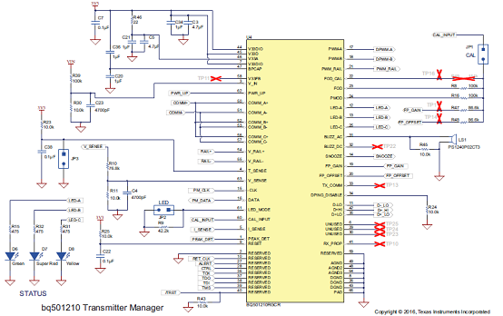 圖5.評估板bq501210EVM-756電路圖:發送器管理電路