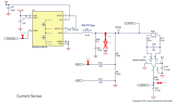 圖6.評估板bq501210EVM-756電路圖:電流檢測電路