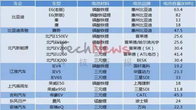 其中,北汽、上汽以及吉利汽車走得是磷酸鐵鋰電池以及三元鋰電池”二者兼修”的路線,出于續航考慮,這些車企更加偏愛三元鋰電池。