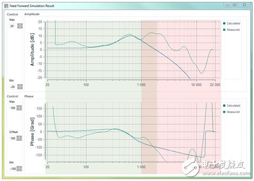 為了解決這一問(wèn)題,AS3415評(píng)估軟件整合了前饋濾波器仿真工具,如圖5所示。設(shè)計(jì)工程師能夠使用這一工具來(lái)設(shè)計(jì)理想的ANC濾波器。這一工具提供了一套預(yù)定義的濾波器架構(gòu),取代了修改零件值及濾波器結(jié)構(gòu)的做法。基于為許多不同客戶模擬的濾波器結(jié)構(gòu),這些預(yù)定義的濾波器結(jié)構(gòu)能夠涵蓋90%的ANC聲學(xué)需求。圖6顯示了該工具的模擬結(jié)果。綠色曲線代表理想的ANC增益和相位響應(yīng),藍(lán)色曲線顯示了利用圖5的工具制作的ANC濾波器的模擬結(jié)果。設(shè)計(jì)濾波器時(shí),有一點(diǎn)很重要,那就是我們要注重哪些頻段。ANC耳機(jī)的運(yùn)作有特定的頻率范圍,這并非由于AS3415本身的局限性,而是跟聲音的傳播速度及耳機(jī)的聲學(xué)特性相關(guān)。如果我們只關(guān)注理想濾波曲線中的增益響應(yīng),設(shè)計(jì)符合該曲線的濾波器則很容易。但問(wèn)題是在ANC濾波器的設(shè)計(jì)中也得同時(shí)匹配相位。由于更高頻率下的相位幾乎旋轉(zhuǎn)了180度,設(shè)計(jì)出的濾波器很有可能與頻率響應(yīng)匹配,而不與相位匹配。取決于不同的耳機(jī)及其相位響應(yīng),我們通常可以做到1.5kHz頻率以下的濾波器匹配。更高頻的部分需要盡可能的衰減。如果不衰減這些未匹配的高頻部分,可能會(huì)引入噪音。我們?cè)诘皖l部分減弱噪音,但如果高頻的相位失配,就會(huì)導(dǎo)致噪音被放大。為了避免這一現(xiàn)象,我們會(huì)盡量在無(wú)法匹配的區(qū)域降低增益。圖6中的綠色透明區(qū)域代表我們通常能達(dá)到的增益和相位的最小失配。紅色區(qū)域是我們要盡量衰減的部分。高頻衰減和相位響應(yīng)之間必須達(dá)到一個(gè)良好的平衡。如果在高頻下衰減得太多,會(huì)影響到低頻的相位響應(yīng),從而可能失去ANC的效果。