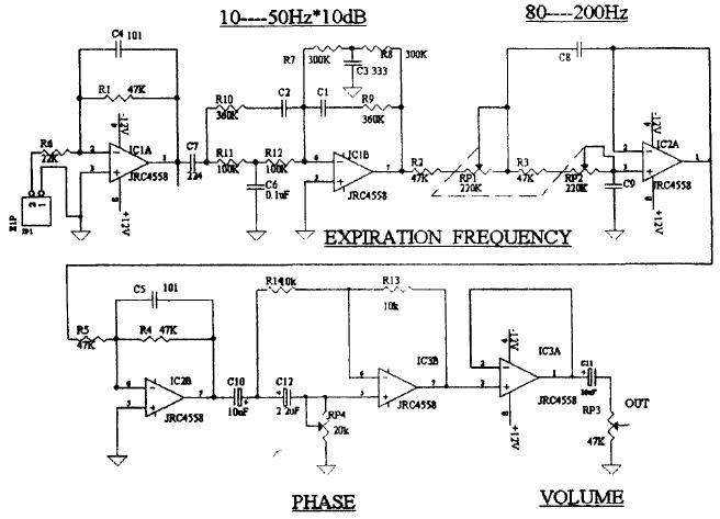 本文提供一種設(shè)計(jì)比較完善的超重低音前級(jí)信號(hào)處理部分電路,其中第一級(jí)為信號(hào)放大,根據(jù)需要可調(diào)整本級(jí)放大倍數(shù),第二級(jí)為50Hz以下超重低音的提升電路,這是一般低音炮電路所沒(méi)有的,第三級(jí)為頻率可調(diào)低通濾波器,調(diào)整范圍為80Hz-200Hz,第四級(jí)為隔離緩沖級(jí),第五級(jí)為0-180度相位連續(xù)調(diào)整電路。這也是一般低音炮所沒(méi)有的功能單元,很有特色,最后一級(jí)也屬于隔離緩沖級(jí),最后面為音量調(diào)整電位器。制作方而、其三塊雙運(yùn)放可采用一般4558即可,供電電源為穩(wěn)壓電源±12-18V,由于電流很小,可由功率放大級(jí)電源經(jīng)電阻降壓取得,以簡(jiǎn)化設(shè)計(jì)制作難度。對(duì)此電路感興趣者,可以根據(jù)需要予以適當(dāng)?shù)膭h減。