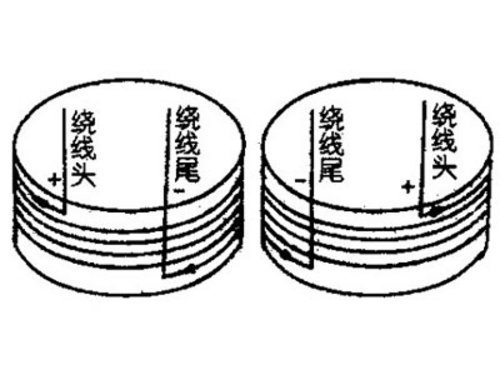 電池“+”極接揚聲器“+”端,紙盆或振膜向上推動時,電池“+”極觸及的一端為揚聲器的“+”極。二是用指針式萬用表觸及揚聲器的“+、-”極,紙盆向上推動,紅筆接的一端為揚聲器的“-”極,黑表筆接的一端為揚聲器的“+”極。三是在場聲器的修理組裝中,可以從音圈的繞線方向來判斷其極性,見圖。