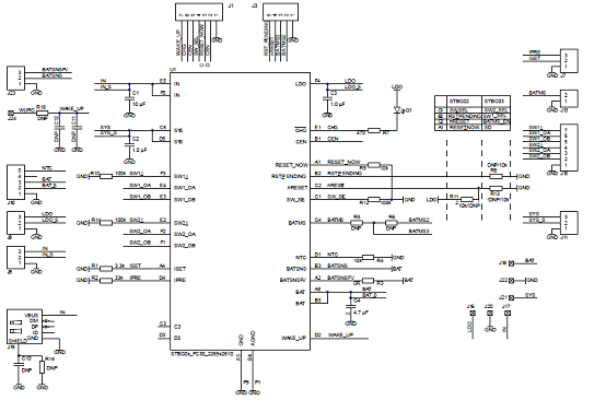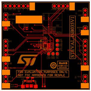 The STEVAL-ISB035V1 evaluation board provides full access to STBC03 functions through header connectors and can besupplied through a micro-AB USB connector.