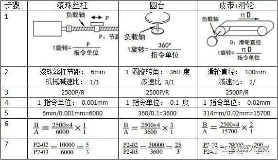 按照以下1~6的順序,計算每轉脈沖數或者電子齒輪比。