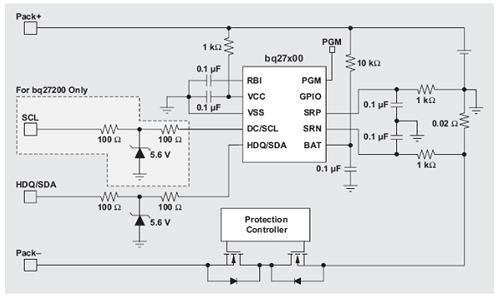圖1描述了電池組中的應用電路。根據所使用電池電量監測計IC的不同,電池組將至少具有三到四個可用外部終端。