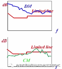 在實際運用中如果沒有插入輸入EMI的低通濾波器;我們采用差模和共模分離器進行無濾波器系統的理論研究如下:我們的測試的差模和共模的限值情況如下: