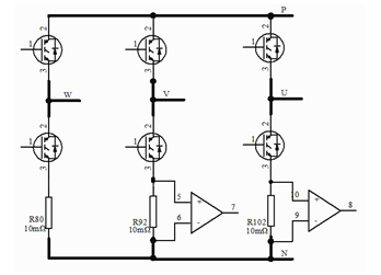 對于320V供電空調(diào)壓縮機,電機內(nèi)阻0.2Ω,如果采樣電阻合適,則對回路沒有什么影響。如果采樣電阻的阻值過大,會引起電壓的損耗,使能量效率變低,較大的阻值會使負(fù)載電壓發(fā)生偏移,產(chǎn)生電磁干擾,產(chǎn)生系統(tǒng)對噪聲敏感的問題。當(dāng)確定好阻值后還需要考慮電阻的穩(wěn)定性能和阻值誤差。