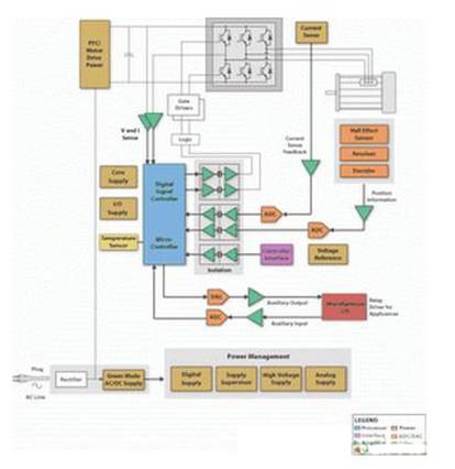 控制器:TI還提供一系列的控制處理器解決方案,從超低功耗MSP430微控制器到TMS470基于ARM7的處理器和C2000數字信號控制器(DSC)。恰當的控制器可以優化電機驅動效率,提高可靠性和降低整體系統成本。C2000控制器的32位DSP水平的性能和針對電機控制優化的片上外設使用戶可以輕松地實現先進的算法,如三相馬達的無傳感器矢量控制。C2000系列控制器(從低成本F28016到業界首個浮點DSC TMS320F28335)都保持軟件兼容。