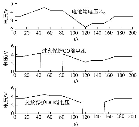 仿真模型中受控電壓源的給定信號在波形大體一致的前提下可有微小差別,以代表電池個體充放電的差異。圖6為電池組中單節電池電壓檢測仿真結果,可見采用過流放電支路均充的辦法,該電路可正常工作。