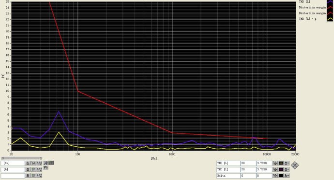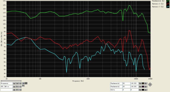 THD是英文“Total Harmanic Distrotion”的縮寫。和頻響曲線類似,在不同的頻點,揚聲器的THD也不同。因此THD會生成一條曲線。而一般的揚聲器的規格中,均對THD曲線沒有相應的描述。但實際上,THD對聽感影響極大。簡要來說,THD總體偏高的揚聲器,其聲音一定不如THD總體偏低的揚聲器來的自然。