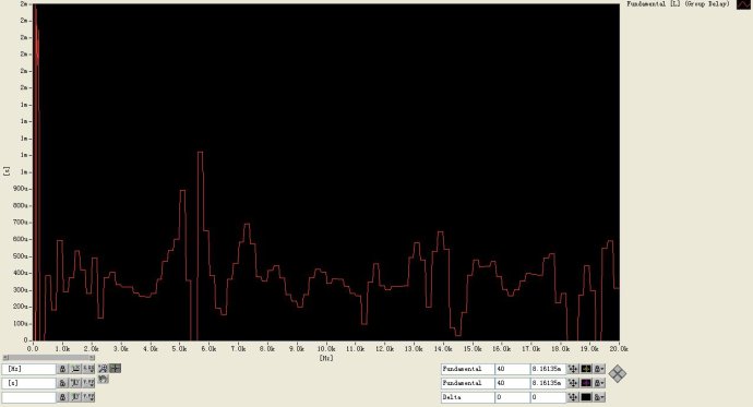 揚聲器的相對相移曲線中的相位波動,往往和幅頻曲線的波動是一一對應的。揚聲器單元作為一個最小相位系統,其不帶群延時的相頻特性可以由其幅頻經希伯特轉換而得到。這些波動,往往會成為揚聲器音色改變的一個標志。例如上圖中,群延遲曲線、幅度曲線、相位曲線中表征的5-6KHz之間的波動。