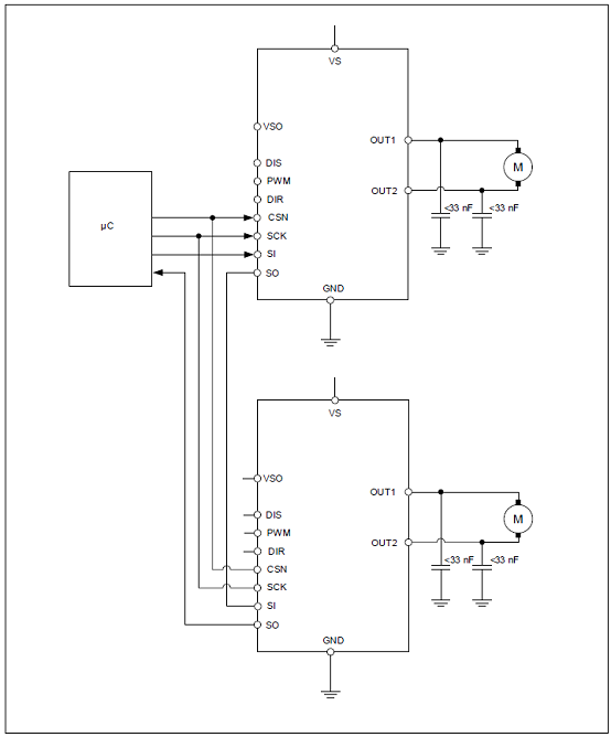 圖4.IFX9201SG SPI菊花鏈配置(其它信號省略)