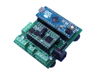 插件電機(jī)驅(qū)動模塊提供預(yù)先設(shè)計的硬件作為模塊,基于開放源碼架構(gòu),可隨時進(jìn)行定制。主機(jī)PC與Arduino MICRO* 1之間的USB聯(lián)接使DC電機(jī)能使用串行通信控制。開發(fā)環(huán)境包括運(yùn)行Arduino IDE 1.8.4的Windows PC、基板和AC適配器,輸出電壓4V至16V,輸出電流約2A。該軟件包括一個應(yīng)用編程接口(API)庫和對設(shè)計人員最重要的強(qiáng)大的圖形用戶接口(GUI),能自動生成Arduino代碼,可導(dǎo)出為Arduino Sketch (.ino)文件。此代碼也可以與Arduino IDE一起使用。