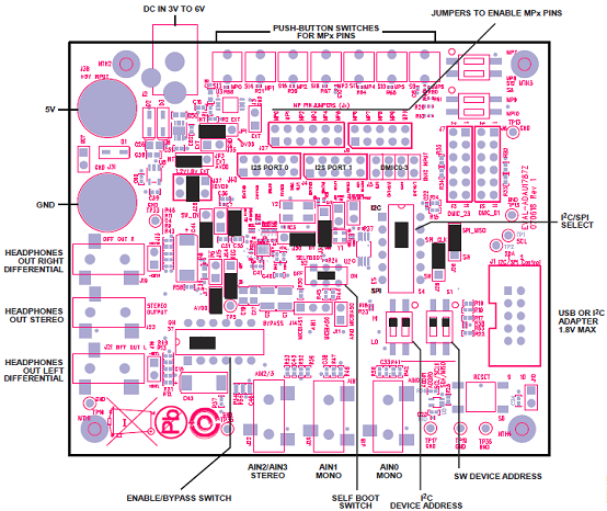 圖7.評估板EVAL-ADAU1787Z PCB設(shè)計(jì)圖(1):頂層裝配