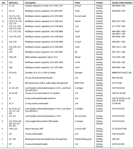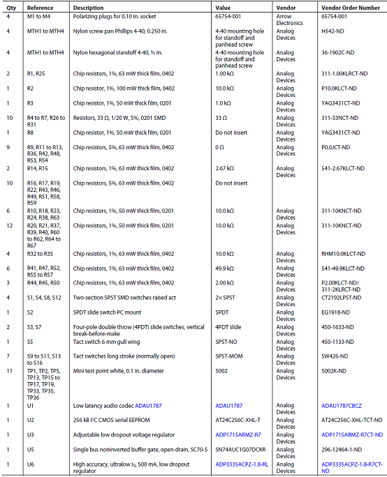 評估板EVAL-ADAU1787Z材料清單: