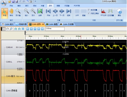 負載率過高,總線節點多,造成總線網線的分布電容很大,體現在下降沿非常緩,如圖4所示,顯性電平回到隱性電平需要的放電時間加大。對信號來說就是會縮短隱性電平時間,容易導致位錯誤。