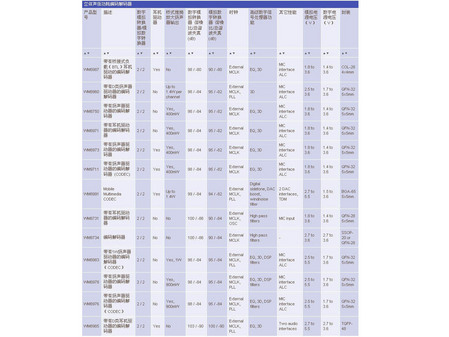 之所以歐勝(WOLFSON)單獨列成一個系列,是因為WOLFSON的音頻DAC,無論是型號還是應用都非常多。下面是歐勝近期新款音頻編解碼器的一個列表,總計達50種之多,以下為可以在隨身聽上使用的DAC: