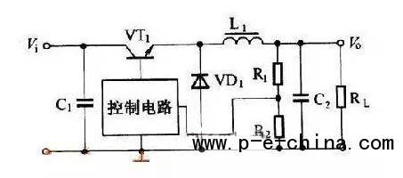 輸出的電壓Vo經R1和 R2組成的分壓器分壓,把輸出電壓的信號反饋至控制電路,由控制電路來控制開關管的導通及截止時間,使輸出電壓保持不變。