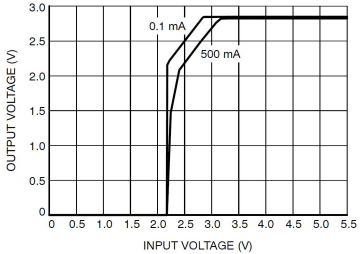 LDO的輸入電壓和輸出電壓的差值就是LDO的壓差。在一定的負載電流下,LDO以最小的輸入電壓維持正常的輸出電壓,此時輸入電壓與輸出電壓的差稱為最小壓差。LDO在不同的負載電流下有著不同的最小壓差。為了保證輸出電壓的穩定,在實際應用中需要根據負載電流的大小來判斷保證正常的輸出電壓所需的最小壓差。LDO的壓差決定了它的工作電壓范圍,低壓差的LDO則可以接受更低的工作電壓,應用在輸入電壓更低的場合,并且降低了耗散功率,提高了效率。圖1是某LDO壓差特性曲線,該LDO標稱輸出電壓為2.8V,從圖中可以看出,輸出電流為500mA時,輸入電壓至少要為3.2V以上才能維持正常的2.8V電壓輸出。