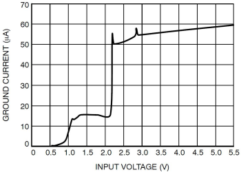 地電流是LDO正常工作時地引腳流過的電流,是LDO工作時自身消耗的電流,也等于輸入電流與負載電流的差,當輸出電流為0時,該電流又稱靜態電流。通常地電流小的LDO的其他參數性能相對比較差,反之亦然。一般在電池供電場合,地電流小的LDO,能夠提高設備的續航時間和供電效率。通常地電流與輸入電壓、溫度和負載電流等有關。圖2是某LDO地引腳電流與輸入電壓的關系曲線,通常來說地電流會隨著輸入電壓的增大而增大。
