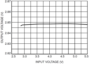 這里VMAX為測試過程中LDO的最大輸出電壓,VMIN為最小輸出電壓,VOUT為標稱輸出電壓。通過式子,可以知道LDO的線性調整率越小穩壓能力越出色。圖4為某LDO線性調整曲線,該LDO在輸入電壓為3.5V~5.0V時輸出電壓相對較高。