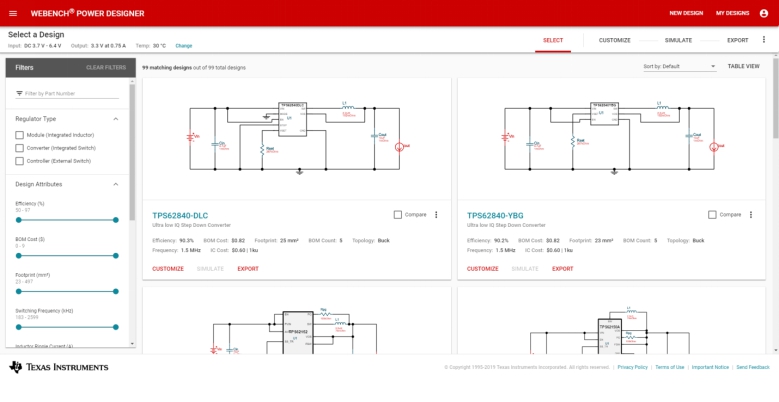 選擇眾多器件后,WEBENCH Power Designer會為每個器件執行詳細設計。