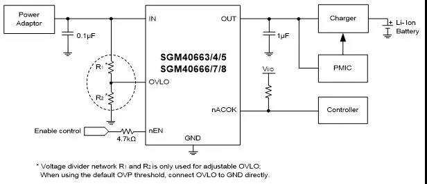 SGM40666系列(SGM40663 ~ SGM40668)設計用于便攜式電子產品充電接口,保護后端低耐壓充電IC或其它連接的電路元件。該器件集成了導通電阻僅29mΩ的通道開關和瞬變抑制泄放開關,浪涌泄放能力達+110V / -400V。過壓保護閾值可選,或利用外圍電阻設置。