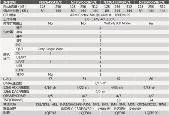 圖6:N32G455系列型號資源配置表