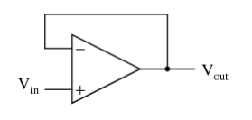如果我們連接運放的輸出到它的反相輸入端,然后在同相輸入端施加一個電壓信號,我們會發現運放的輸出電壓會很好的追隨著輸入電壓。